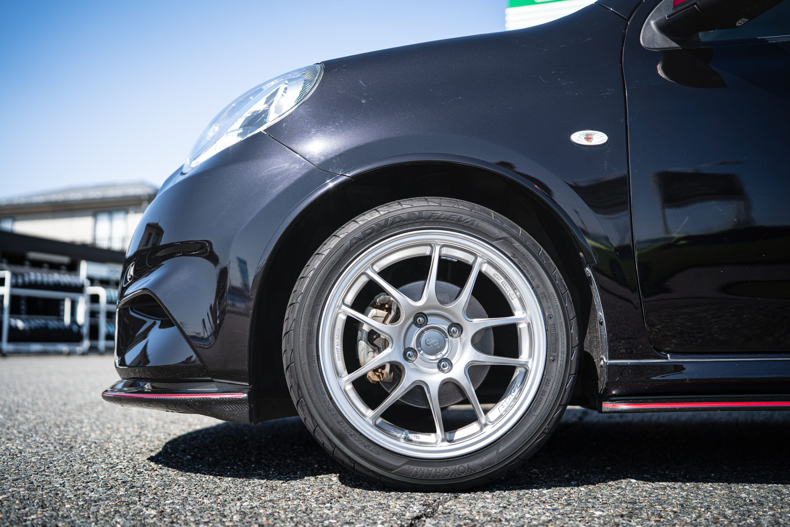 ENKEI PF01とADVAN FLEVAのセットをご納品させていただいたお客様が取り付けたとのことでご来店いただきました!